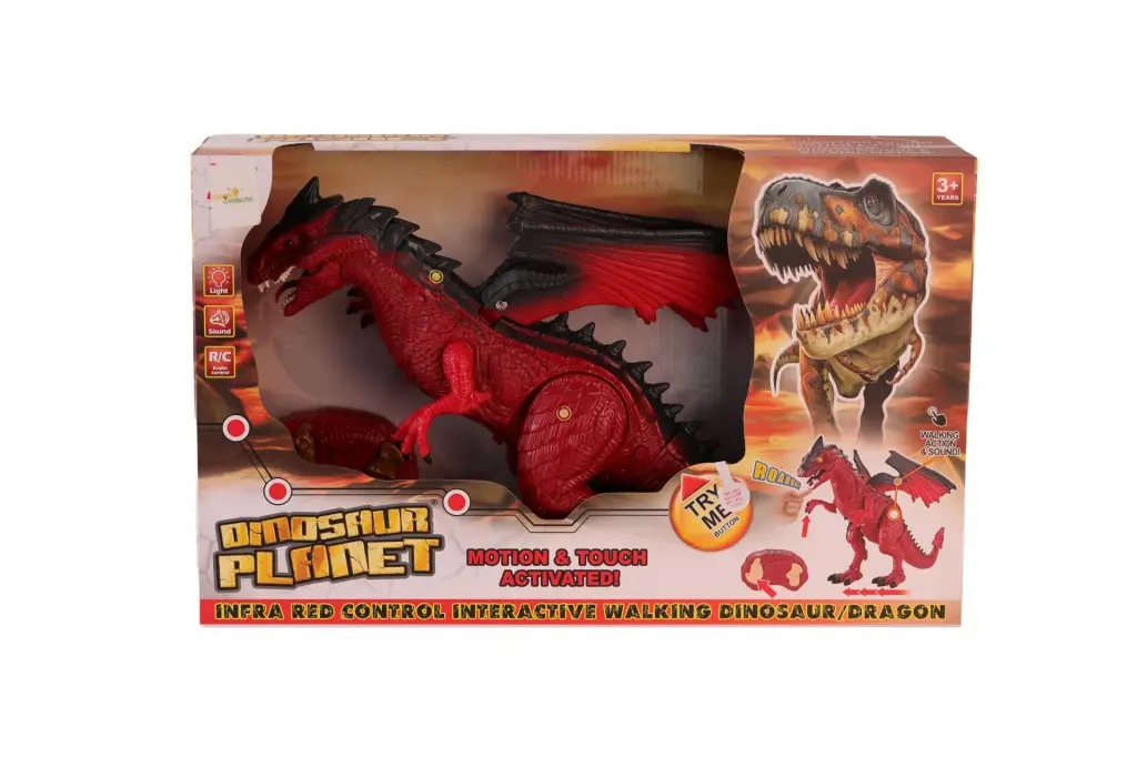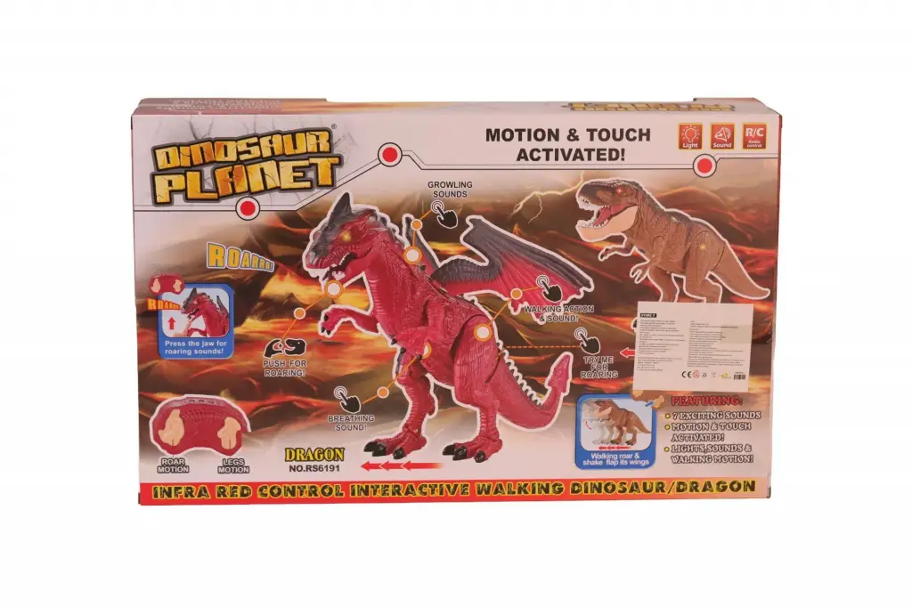 KUMANDALI DİNAZOR -7 heyecan verici ses -Hareket dokunuşu aktif -Işıklı,sesli,yürüme hareketi -Yürürken sallanıyor ve kanatlarını çırpıyor -Ürün boyutu: 49 cm -Kutu boyutu: 49x30,5x11 cm