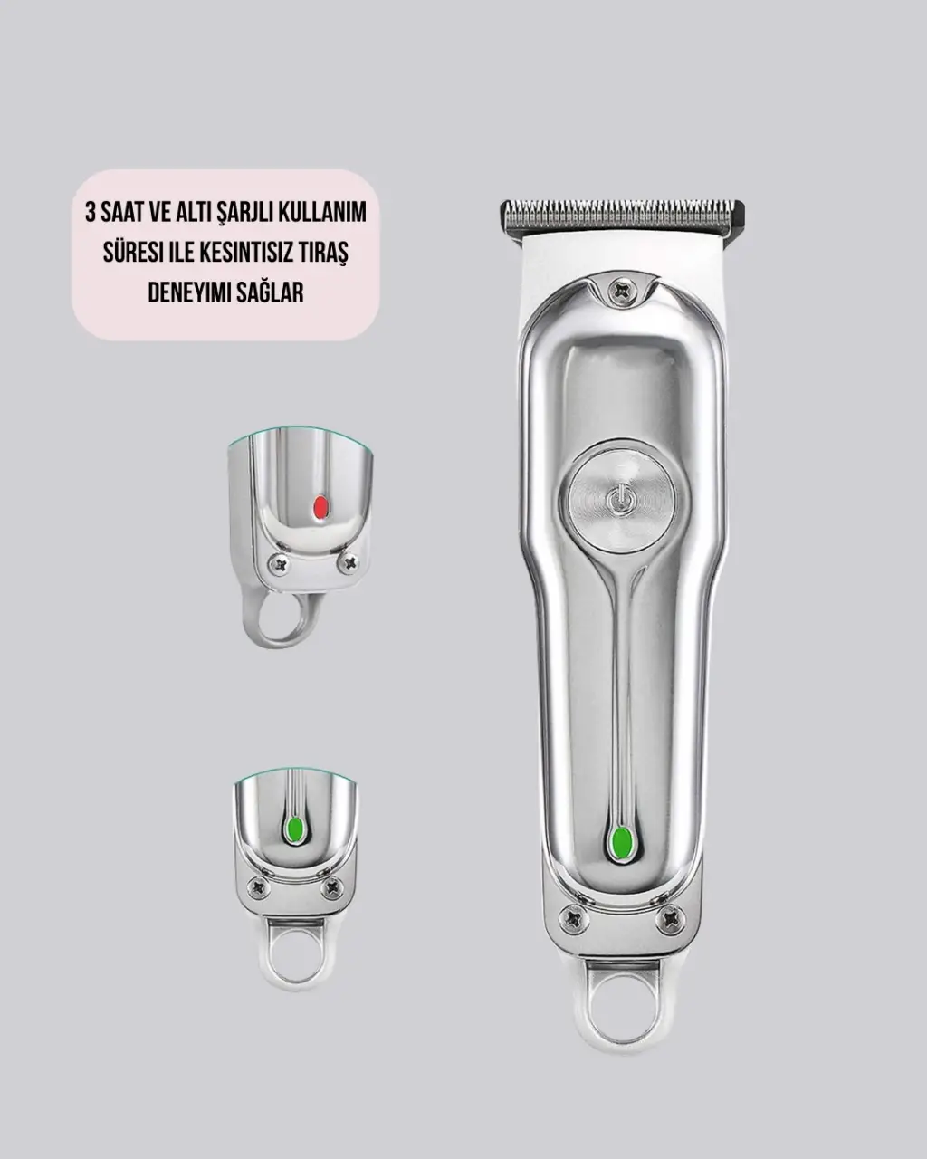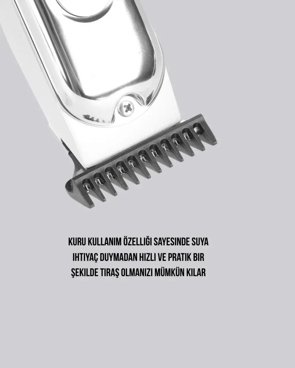 Güçlü motoru ve kaliteli karbon çelik bıçakları ile bu saç ve sakal kesme makinesi, hızlı ve hassas kesim yapmanızı sağlar. Sessiz çalışması sayesinde rahat bir kullanım sunarken, ergonomik tasarımı uzun süre elde tutmayı kolaylaştırır. 1,5 saat şarj ile 120 dakika kesim süresi sunan güçlü lityum pili sayesinde kesintisiz kullanabilirsiniz. Ayarlanabilir tarakları farklı saç ve sakal uzunlukları için uygundur, kişisel stilinizi kolayca oluşturmanıza olanak tanır. Metal gövdesi dayanıklılık sağlar ve modern görünümüyle dikkat çeker. Evde ya da profesyonel kullanıma uygun, pratik ve şık bir bakım aracıdır.