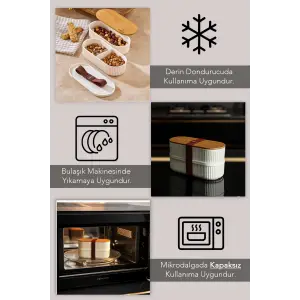 Bambu Kapaklı Lunch Box Kahvaltılık Saklama Kabı Large Bölmeli
