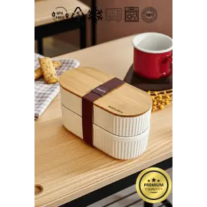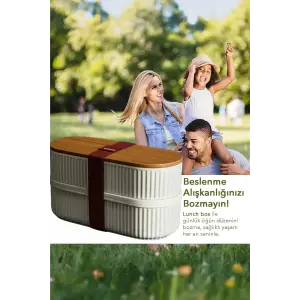 Bambu Kahvaltılık Saklama Kabı İki Bölmeli Büyük Lunch Box