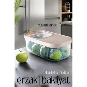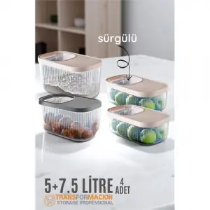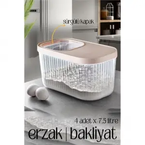 Erzak Bakliyat Kutusu Sürgülü Kapak Saklama Kabı 5 ve 7.5 Litre 4 lü