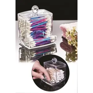Şeffaf Kapaklı Kulak Temizleme Çubuğu Organizatörü Saklama Kutusu