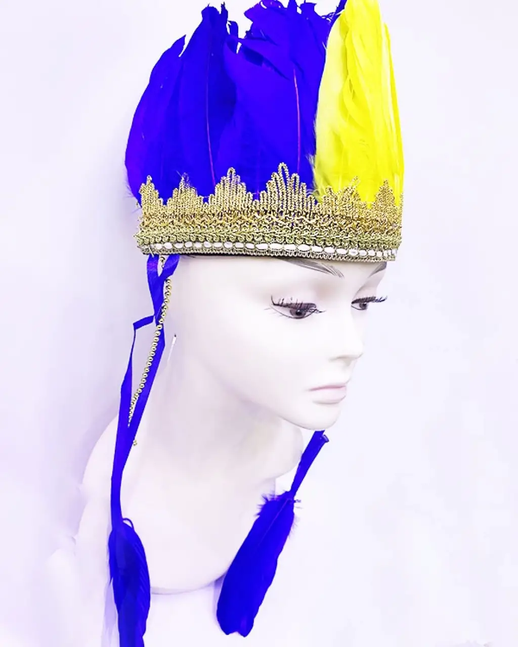 Sarı Lacivert Renk Tüylü Kızılderili Başlığı | Taraftar Başlığı