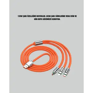 3’ü 1 Arada Kablo – 120W Hızlı Şarj ve Veri Aktarımı Özellikli
