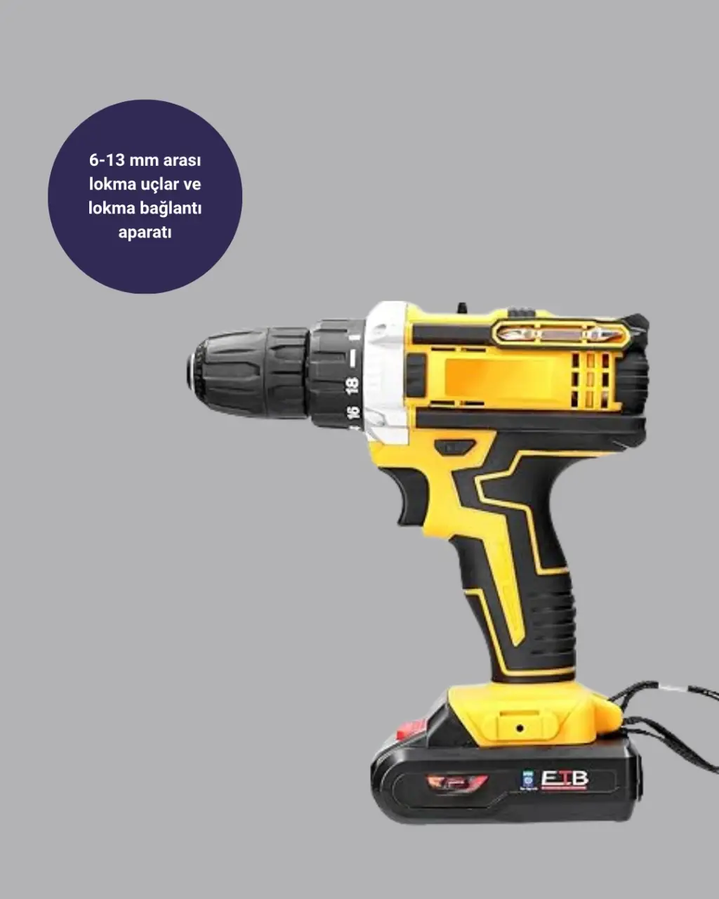 Güçlü, kompakt ve taşınabilir bir matkap arıyorsanız, 2 Bataryalı Darbeli Şarjlı Matkap Seti tüm beklentilerinizi karşılar. Evdeki tamiratlardan profesyonel işlere kadar her alanda üstün performans sunar.24 parçalık aksesuar seti, her tür delme ve vidalama işlemi için gerekli tüm uçları içerir. Metal, ahşap, alçıpan ve plastik yüzeylerde kolay kullanım sağlar.• 6 adet bit ucu• 3 adet HSS metal delme ucu• 3 adet ahşap delme ucu• 6-13 mm lokma uçlar + adaptörÇift batarya sistemi, uzun projelerde kesintisiz güç sunarken, LED çalışma ışığı karanlık köşelerde bile maksimum görünürlük sağlar. 24W motor gücü ve metal dişli sistemi, yüksek tork ve dayanıklılık kombinasyonuyla en zorlu işlerin üstesinden gelir.Ergonomik tutma kolu, uzun süreli çalışmalarda bile el yorgunluğunu azaltır. Tak-çalıştır tasarımı ve otomatik mil kilidi, uç değişimini kolaylaştırır. Kompakt taşıma çantası sayesinde aksesuarlarınızı düzenli ve güvenli şekilde saklayabilirsiniz.Profesyoneller, marangozlar, hobi kullanıcıları ve ev tamirat tutkunları için ideal olan bu matkap seti, her işte güvenilir performans sunar.