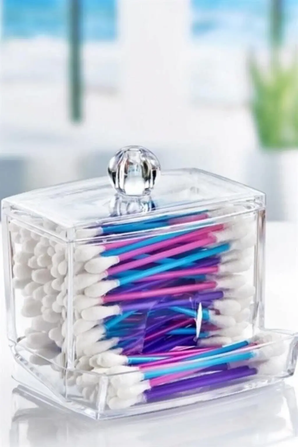 Şeffaf Kapaklı Kulak Temizleme Çubuğu Organizatörü Saklama Kutusu