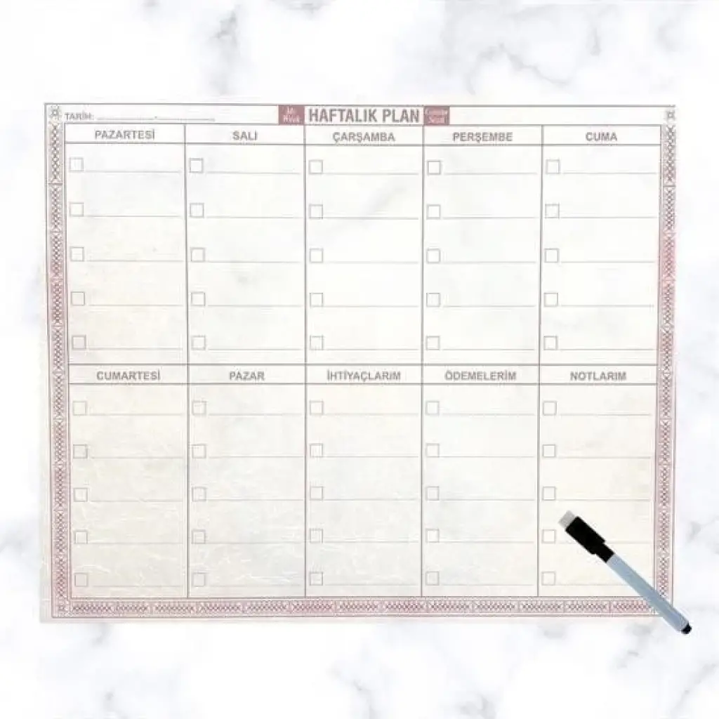 Şeffaf Kendiliğinden Yapışkanlı Kalemli Haftalık Planlayıcı 40cm-50cm