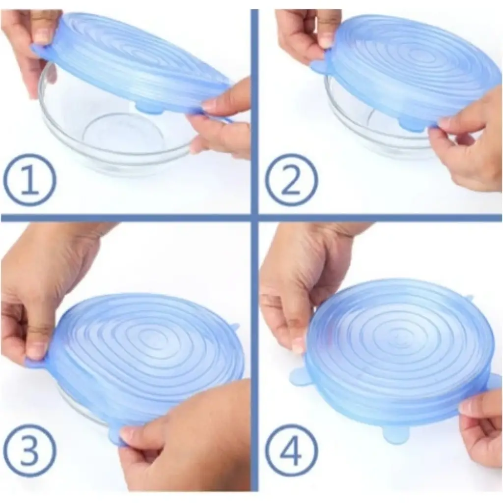 TAZE TUTAN SİLİKON KAPAK 6’LIPratik Streç Kapak, sağlıklı yiyecek saklama konusunda günlük hayatın bir parçası olacak, Türkiye pazarında olmayan, yenilikçi, bir üründür.Bu ürünü kullanacak kişilerin aile bütçesine katkıda bulunarak tasarruf sağlayacak, doğaya saygılı, pratik, tekrar tekrar kullanılabilecek yepyeni bir üründür.Yuvarlak, kare dikdörtgen, eliptik ve değişik şekilli tüm saklama kaplarına uyar.Cam, metal, tahta, seramik gibi farklı materyallerden yapılmış saklama kapları, kase, tabak, tencere, kavanoz, kutu içecek, borcam gibi farklı mutfak malzemeleri ile kullanılabilir.Tüm yiyecekleri, meyve ve sebzeleri taze tutar.Streç filmlere göre çok daha pratiktir, kendine yapışmaz.Saklama kabı kapağı arama derdiniz kalmaz, her kaseniz Pratik Streç Kapak ile saklama kabına dönüşür. Bir kere kullanılıp atılmaz.Sızdırmaz.Bulaşık makinasında ve elde yıkanabilir.Mikrodalga fırında kullanılabilir. Paket İçeriği1 Adet Taze Tutan Silikon Kapak 6’lı