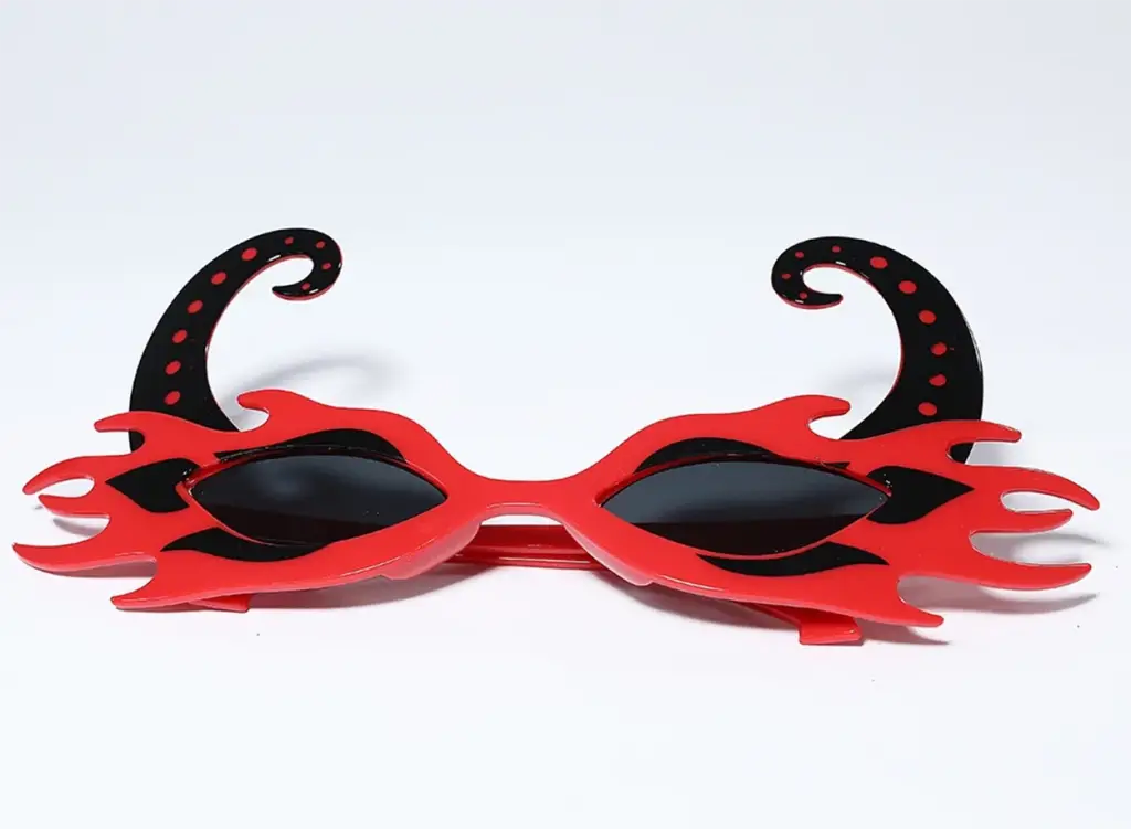 Siyah Boynuzlu Kırmızı Renk Alevli Parti Gözlüğü 21x10 cm, Cadılar Bayramı partileri, kostüm partileri ve diğer eğlenceli kutlamalar için mükemmel bir aksesuar. Gözlükler plastikten yapılmıştır ve her yaştan insan için uygundur. Siyah boynuzlar ve alev şeklindeki çerçeve, her kıyafete eğlenceli ve korkutucu bir hava katacaktır.