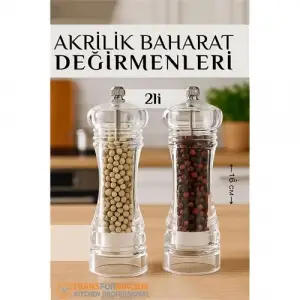 Baharat Öğütücü - Baharat Karabiber Tuz Değirmeni Ahşap Akrilik Kristal 2 li SET