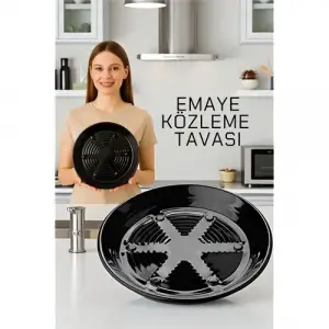 Emaye Közleme Tavası 31 cm - Fırına Uyumlu - Delikli Izgara Yüzeyli, Parlak Siyah