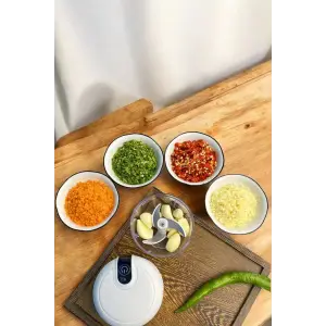 Şarjlı Portatif Doğrayıcı Mini Pratik Rondo El Doğrayıcı Üç Bıçaklı Çelik Bıçaklı