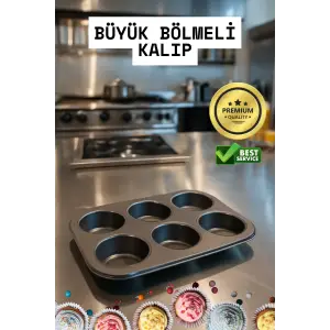 Cupcake Fırın Kalıbı 6 Büyük Bölmeli 6 Bölmeli Muffin Kek Kalıbı