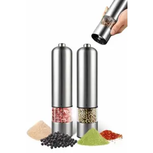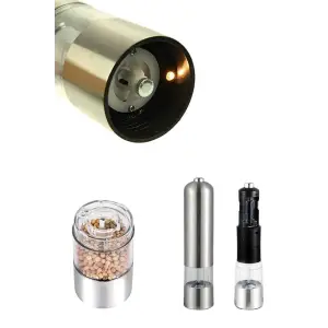 Baharat Öğütücü Paslanmaz Ayarlanabilir Otomatik Pilli Işıklı Tuz & Karabiber