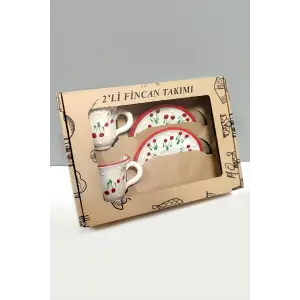 Kiraz Desenli Seramik İkili Fincan Takımı