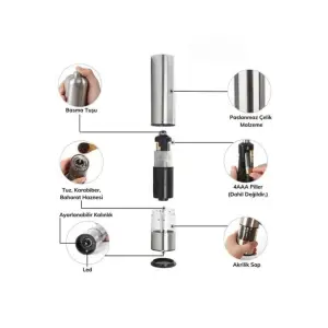 Pilli Otomatik Baharat Değirmeni Gıda Sınıfı Çelik Sessiz Öğütücü Alet