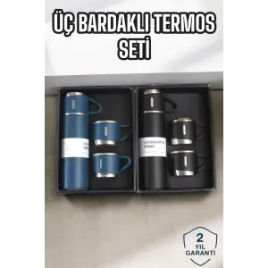 Şık ve Dayanıklı 3 Bardaklı Termos Seti Uzun Süre Isı Koruma Özellikli