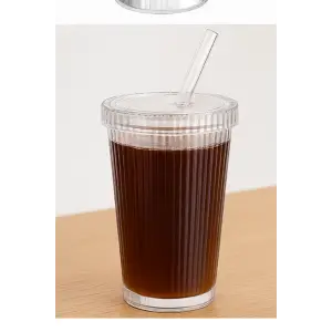 10 Adet Latte Kapaklı Pipetli Kristal Desen Fenomen Bardak Soğuk Kahve, Smoothie, İçecek Bardağı