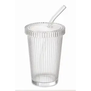 4 Adet Latte Kapaklı Pipetli Kristal Desen Fenomen Bardak Soğuk Kahve, Smoothie, İçecek Bardağı