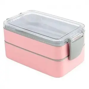 2 Bölmeli Çok Amaçlı 900 ml Kapasiteli Çatal Kaşıklı Dayanıklı Beslenme Kabı Yiyecek Kutusu - 1 Adet Stokta Olan Gönderilir