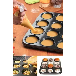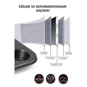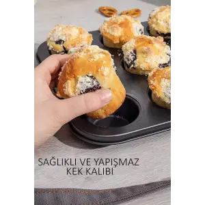 Yanmaz Yapışmaz Muffin Kalıbı 12li Fırın Mini Kek Browni Kekstra Kalıbı Cupcake ülü