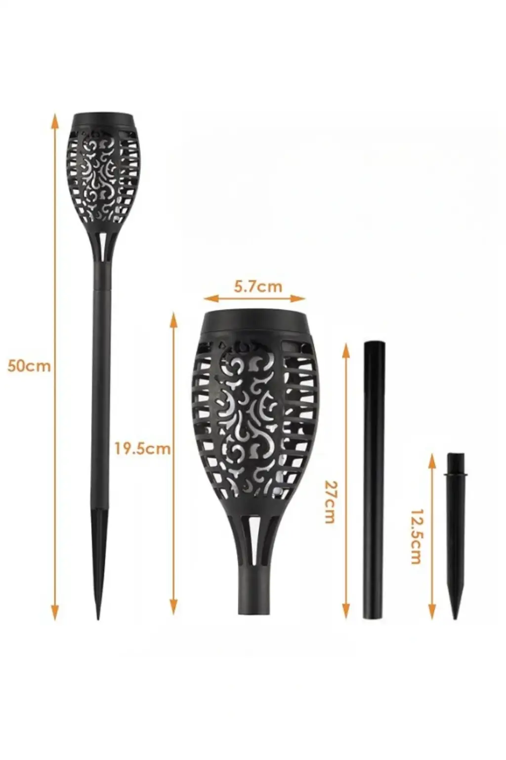 SOLAR ALEV EFEKTLİ BAHÇE LAMBASI Solar Alev Efektli Bahçe Lambası, toprağa saplanabilen altındaki kazıklar sayesinde bahçe veya açık alanlarda kullanım için idealdir. Aynı zamanda, kazıkları çıkartılarak masaüstünde ya da farklı zeminlerde de kullanılabilir. Güneş enerjisi ile çalışan bu lamba, çevre dostu bir seçenek sunarken alev efektiyle atmosferi güzelleştirir. Pratik tasarımı ve çok yönlü kullanımıyla dikkat çeker.Lamba, güneş panelleri aracılığıyla enerji toplar ve bu enerjiyi geceleyin otomatik olarak açılan LED lambalara dönüştürerek bahçenize sıcak ve davetkâr bir atmosfer katar. Dayanıklı malzemelerden üretilmiş olan lamba, dış hava koşullarına karşı dirençlidir. Hem değişik zeminlere uyum sağlayabilmesi hem de çevre dostu enerji kullanımıyla, kullanıcıya pratik ve estetik bir aydınlatma çözümü sunar.Paket İçeriği1 adet solar alev efektli bahçe lambası