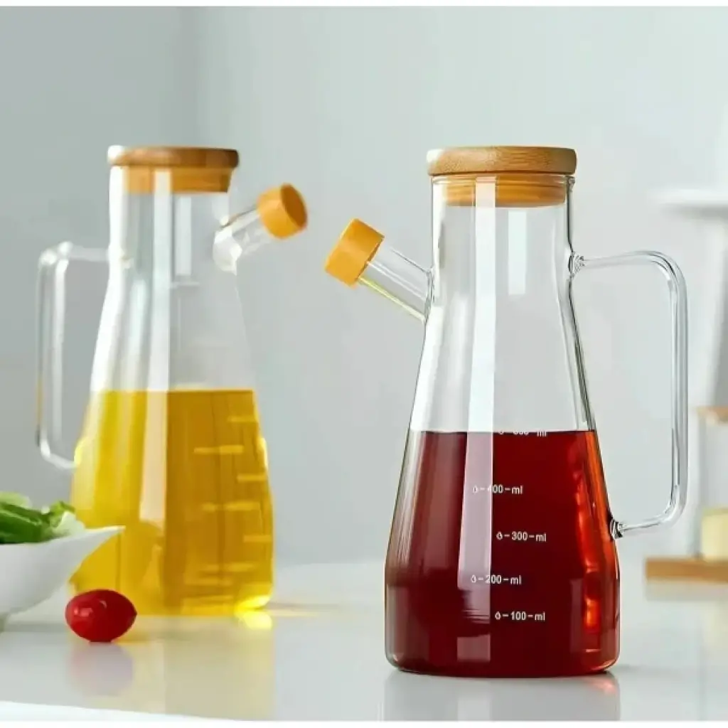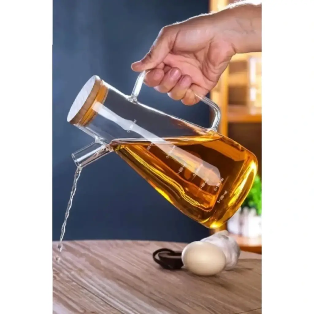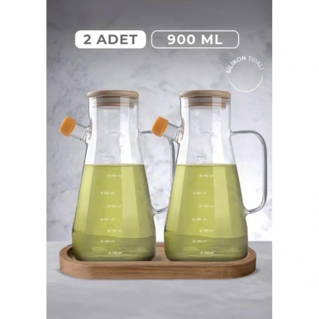 STANDLI 2'Lİ CAM YAĞDANLIKÜrün ÖzellikleriStandlı 2'li Cam Yağdanlık, şık ve fonksiyonel tasarımı ile mutfaklarınıza zarif bir dokunuş katar. Borosilikat cam malzeme ile üretilmiştir ve 900 ml kapasiteye sahiptir. Silikon uçları sayesinde sızdırmazlık sağlar ve kullanım sırasında kolayca kontrol edilebilir. 2 adet olarak sunulan bu set, yemeklerinizde ya da salatalarınızda doğru miktarda yağ dökmenizi sağlar. Ahşap kapakları ise estetik ve doğallığı bir araya getirir. Ayrıca, her iki yağdanlık da üzerinde ölçü birimleri ile işaretlenmiştir, böylece ihtiyacınız olan miktarı daha rahat ayarlayabilirsiniz.Paket İçeriği1 Adet Standlı 2'li Cam Yağdanlık