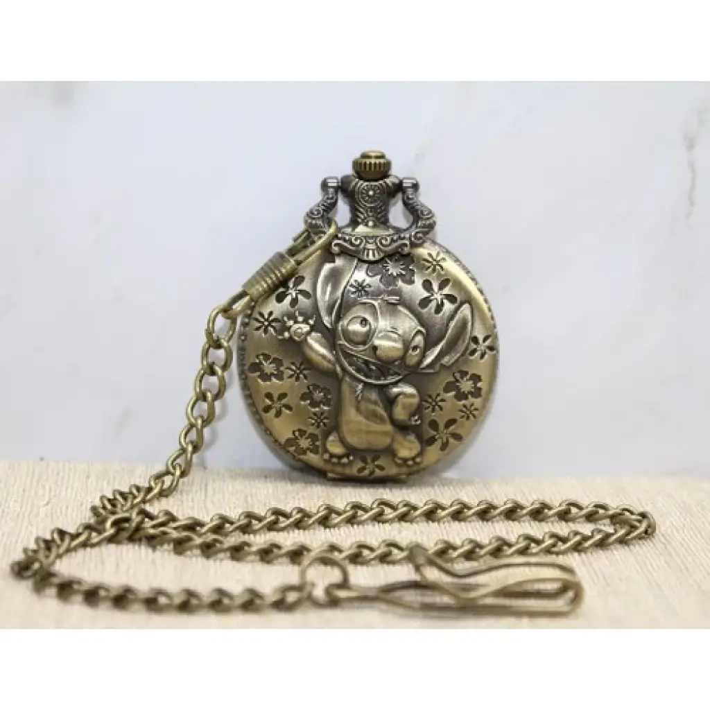 STITCH TASARIMLI KÖSTEKLİ SAATÜrün ÖzellikleriSevilen Stitch karakteri ile tasarlanmış bu köstekli saat, vintage bronz rengi ve zarif işçiliğiyle hem koleksiyon hem de günlük kullanım için idealdir. Saat kapağında detaylı Stitch figürü bulunmakta olup, iç kısmında klasik analog mekanizma yer almaktadır. Uzun zinciri sayesinde kolayca taşınabilir ve nostaljik bir aksesuar olarak kullanılabilir.Paket İçeriği1 Adet Stitch Karakter Baskılı Köstekli Saat