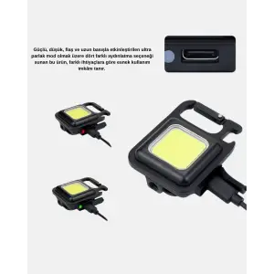 Şarjlı COB LED Anahtarlık Fener – 4 Modlu, Manyetik ve Katlanabilir Standlı