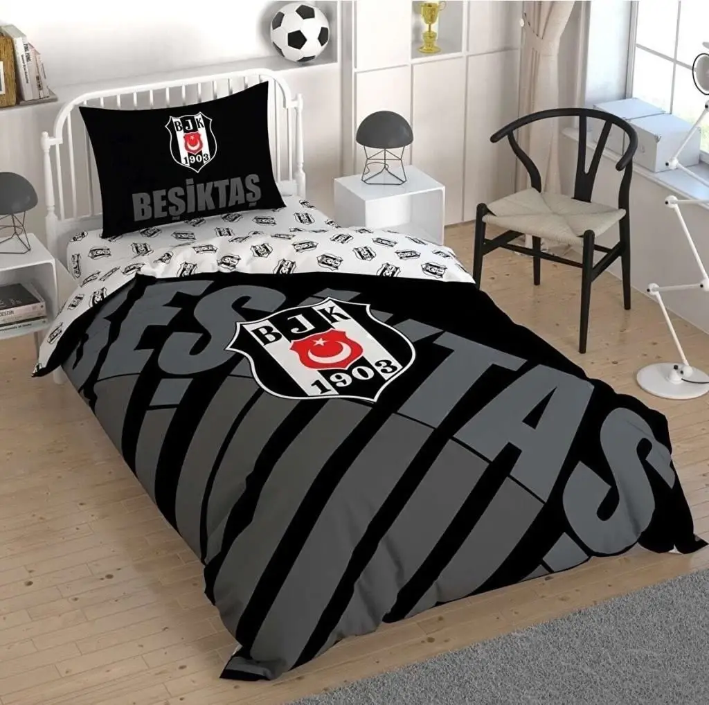 Taç Lisanslı Beşiktaş Siyah Logo Tek Kişilik Nevresim Takımı