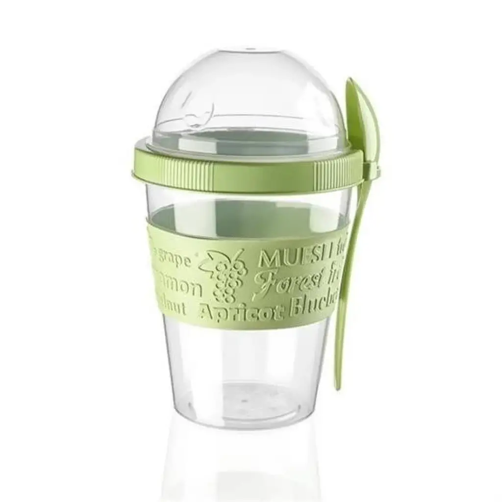 -Özellikle diyet yaparken hafif ve doyurucu atıştırmalıkların tüketilmesi gerektiği zamanlarda çeşitli meyveler, yulaf ve yoğurt birlikteliği ile hazırladığınız ara öğünlerinizi muhafaza edebileceğiniz kapaklı kaşık hazneli yoğurt kabıdır
