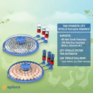 Tavuk, kaz, ördek, hindi ve bıldırcın üretimi için tasarlanan 128 yumurta kapasiteli tam otomatik kuluçka makinesi, yüksek çıkım oranı ve gelişmiş otomatik sistemleri sayesinde hem hobi kullanıcıları hem de küçük-orta ölçekli çiftlikler için idealdir.