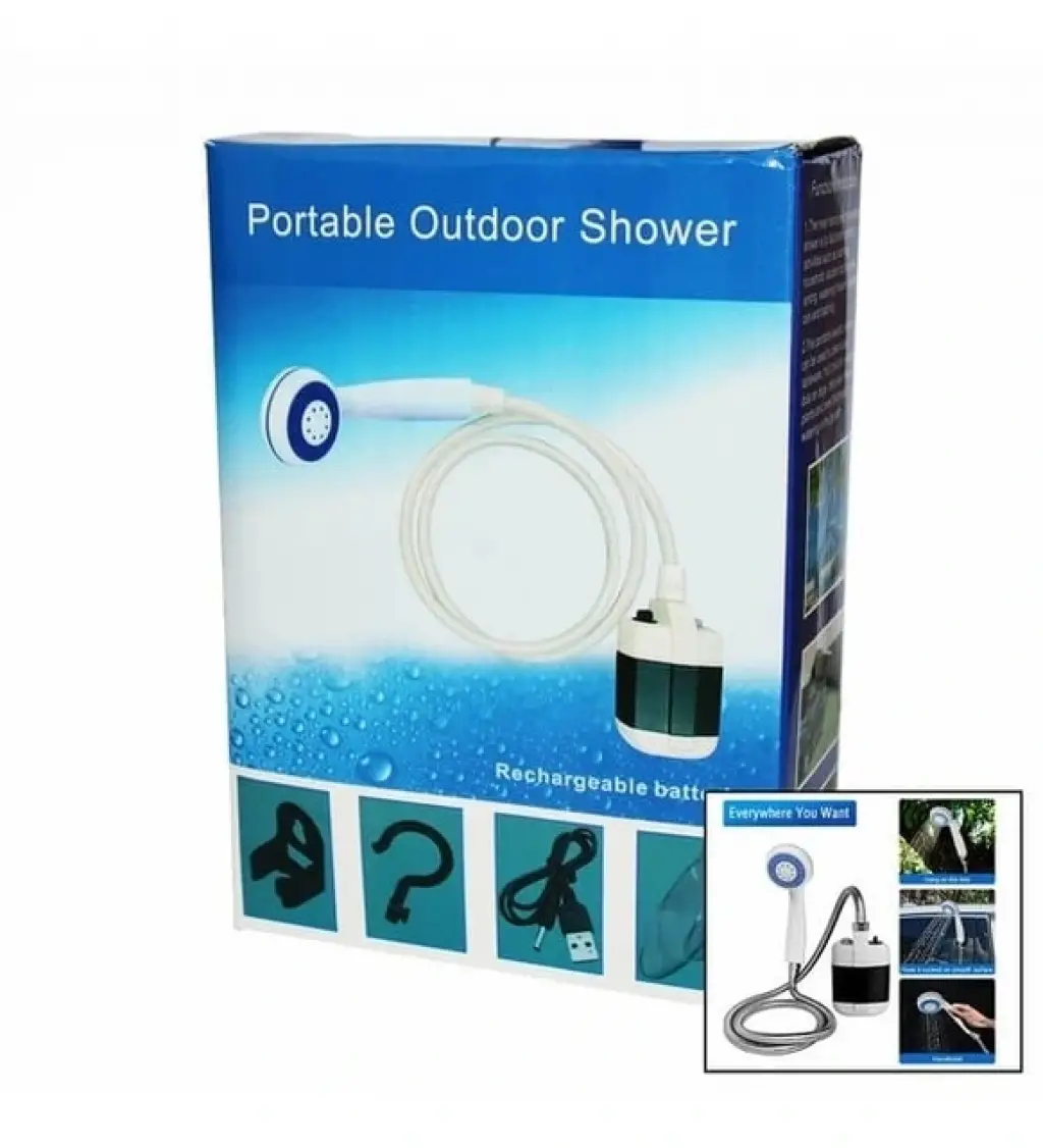 Taşınabilir Duş Seti – Pompalı ve ŞarjlıÜrün Açıklaması:Kolay taşıma ve kullanım imkanı sunan taşınabilir duş seti, kamp, açık hava etkinlikleri veya suya erişimin sınırlı olduğu durumlar için ideal bir çözüm sunar. Güçlü pompası sayesinde düşük su basınçlarında bile etkili bir duş deneyimi yaşamanızı sağlar. USB şarj edilebilir özelliği ile uzun süre kullanım imkanı sunar.Özellikler:Taşınabilir ve Kompakt Tasarım: Kolayca taşıyabilir, istediğiniz her yere götürebilirsiniz.Güçlü Pompa: Düşük basınçlı alanlarda bile verimli su akışı sağlar.USB Şarjlı: Pratik bir şekilde şarj edilebilir, ekstra batarya ihtiyacını ortadan kaldırır.Çok Amaçlı Kullanım: Kamp, plaj, açık hava etkinlikleri ve acil durumlar için idealdir.Paket İçeriği:1 adet duş başlığı1 adet su pompası1 adet hortum1 adet USB şarj kablosu1 adet askı atı1 adet vantuzlu bağlantı atı