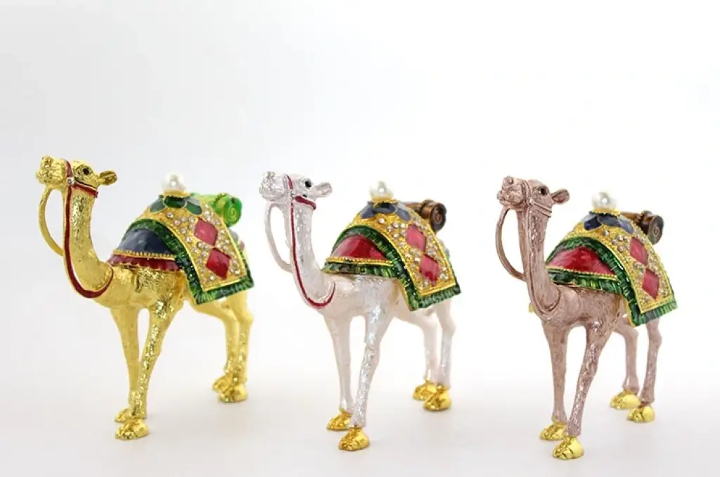 SWAROVSKI TAŞLI TEKLİ DEVE FİGÜRÜ MODEL 7Ürün Özellikleri taşlarıyla süslenmiş bu zarif deve figürü, kaliteli işçiliği ve estetik tasarımı ile dikkat çeker. 16x16 cm boyutunda olan bu figür, iç mekan dekorasyonuna modern bir dokunuş sağlar. Parlak taşlar ve altın gümüş tonlarındaki detaylar, figüre sofistike bir görünüm katmaktadır.Paket İçeriği1 Adet Taşlı Tekli Deve Figürü Model 7