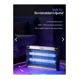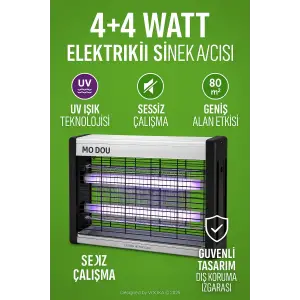 Sinek Öldürücü 4+4W UV Işıklı Büyük Boy Elektrikli Sinek Avcısı Sessiz ve Etkili Böcek Öldürücü Ciha