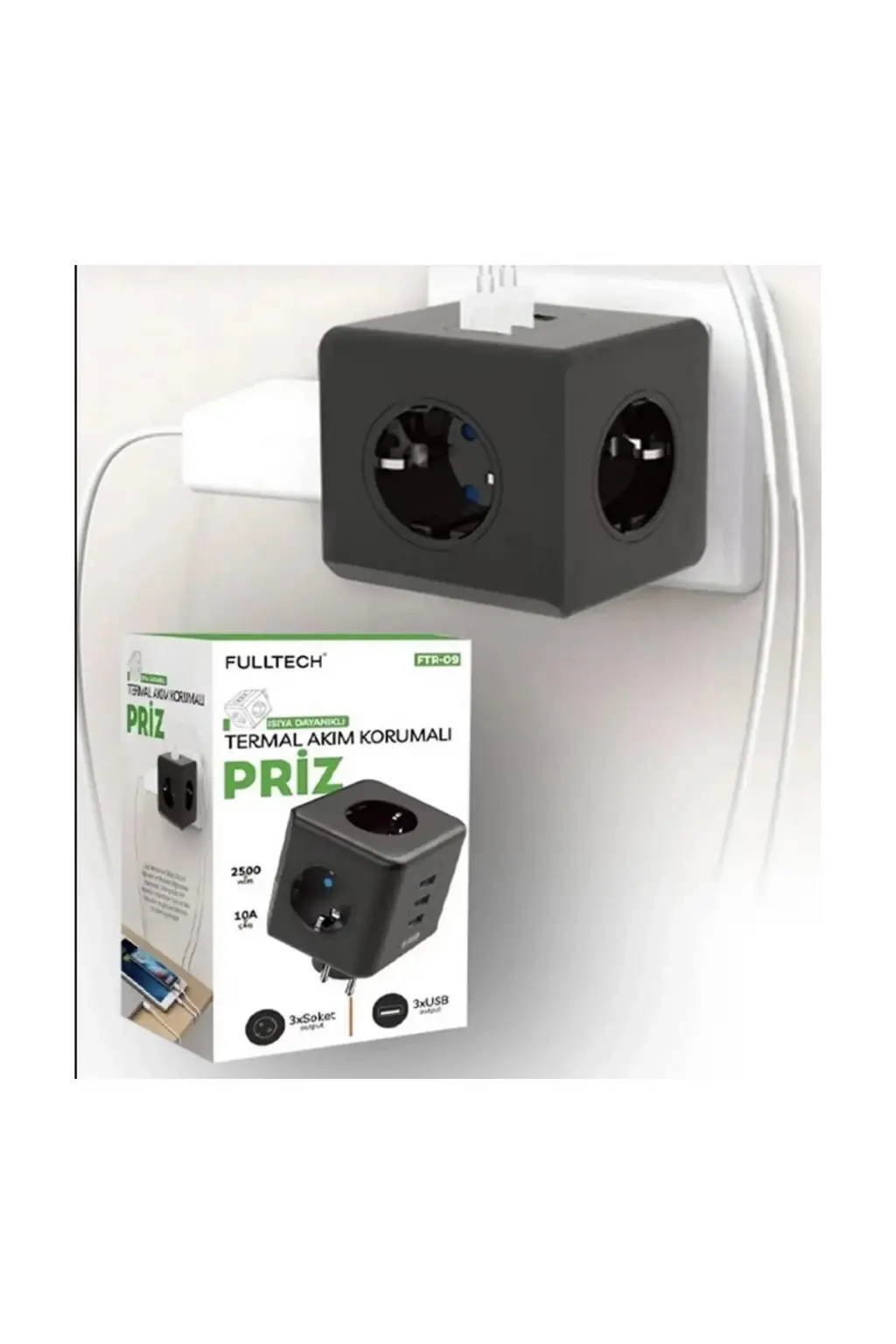 Çoklu Kablolu Priz Yüksek Gerilim Korumalı 3’lü Priz 1x Usb 2x Type-c Çıkışlı Grup Priz Çoğaltıcı Siyah