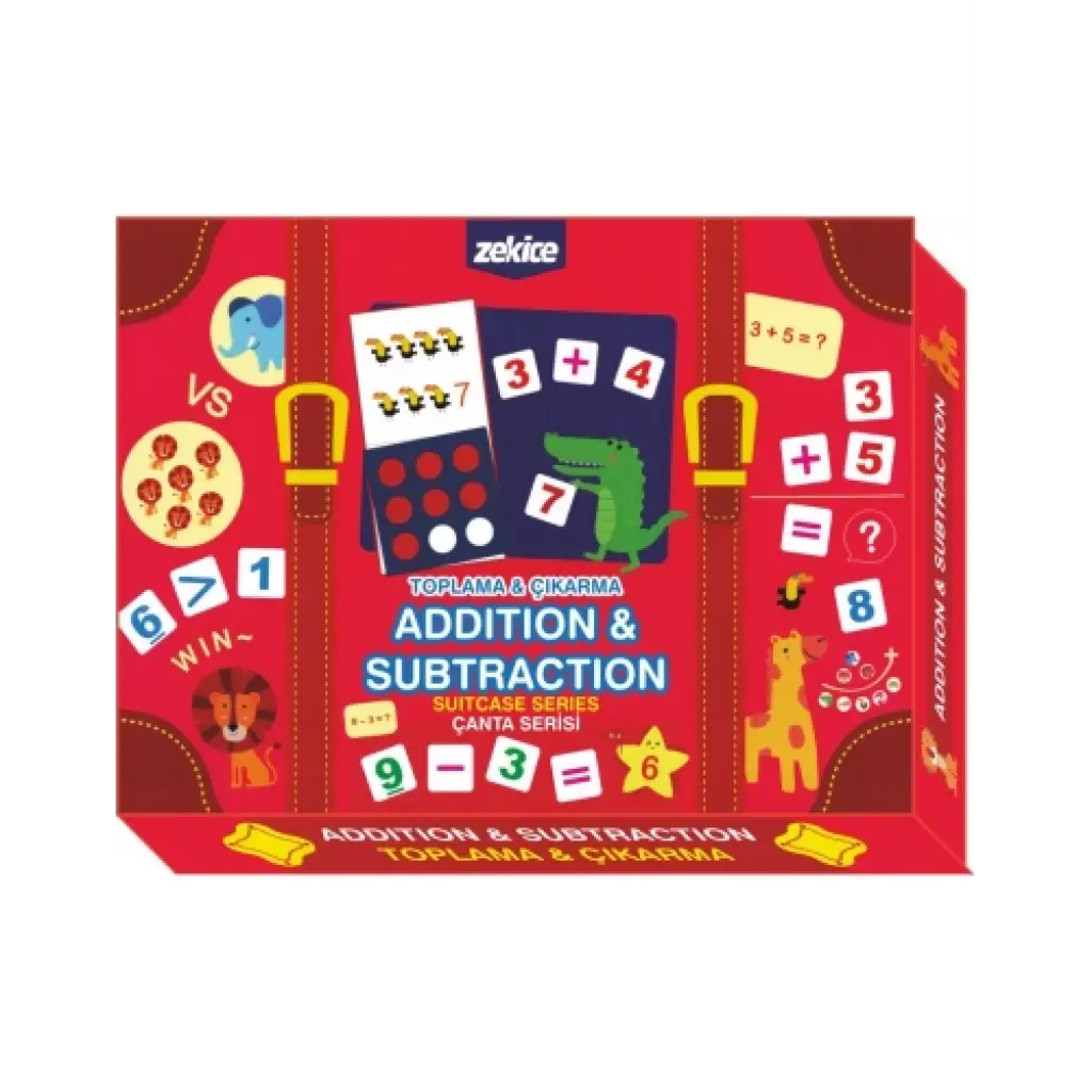 TOPLAMA ÇIKARMA OYUNU- Matematik eğitimine yeni başlayan çocuklar için özel olarak tasarlanmış bir matematik eğitim seti.- Kartlar, çocukların rahat kullanabilmesi için büyük boyutta tasarlanmıştır.- Setin içinde 1 adet yazılıp silinebilen kalem, hediye olarak kutuya eklenmiştir.Bu set, çocukların matematik seviyelerine göre özel olarak ayarlanmıştır. Eğitmen ve ebeveynler, çocuğun seviyesine uygun eğitim verirken bu materyalden faydalanabilirler.Paket İçeriği1 adet toplama çıkarma oyunu