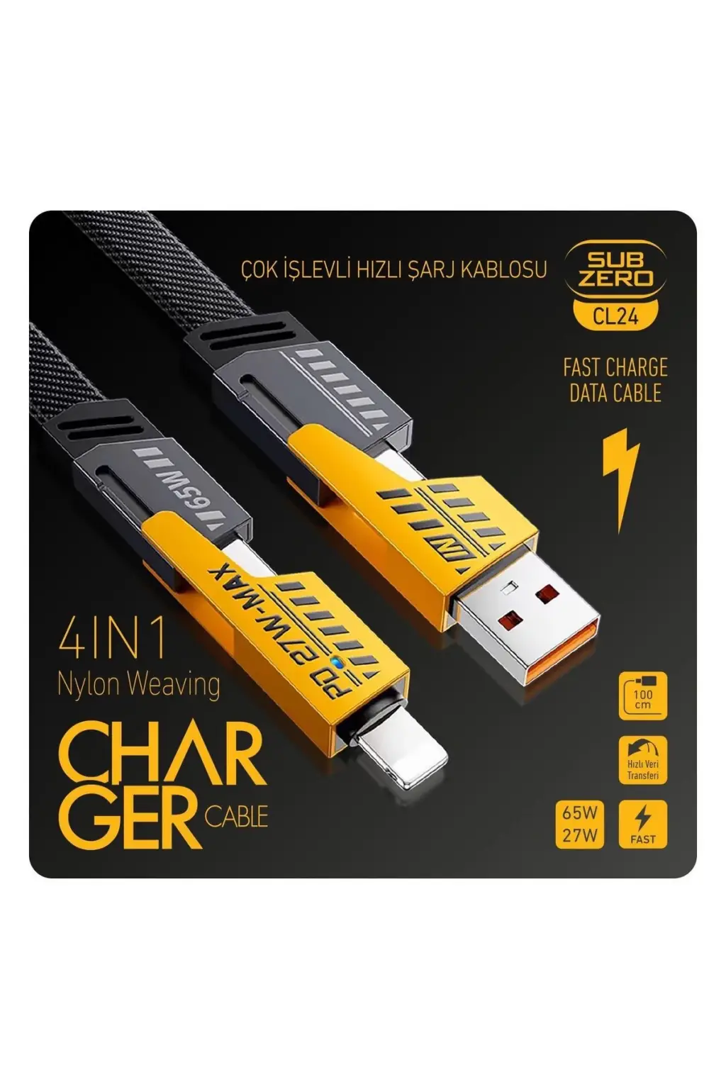 Cl24 Süper Hızlı 4 In 1 Şarj Kablosu, tüm telefon modelleriyle uyumlu bir kullanım sunar. Bu ürün, elektronik cihazlarınızı hızlı ve güvenli bir şekilde şarj etmenizi sağlar.