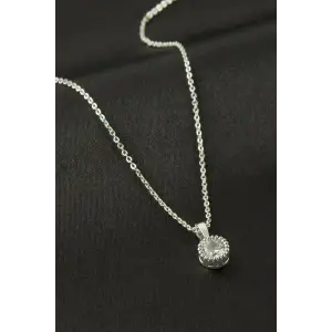 Yuvarlak Zirkon Tek Taşlı Kolye