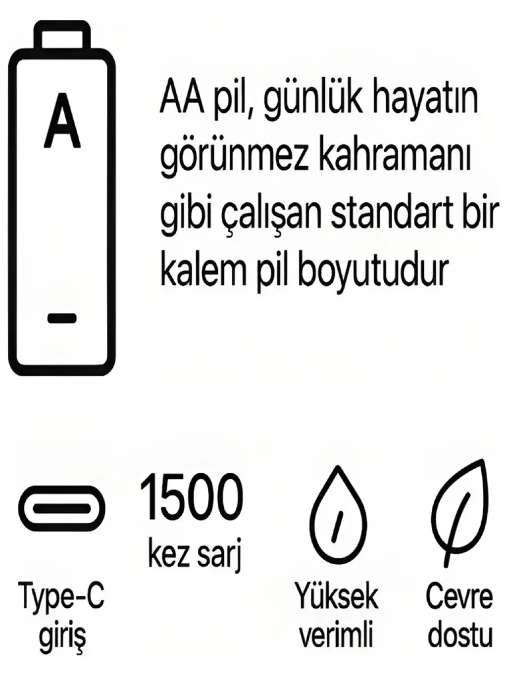 Çevre dostu: Tek kullanımlık pillerin yerine geçerek hem tasarruf sağlar hem de atık oluşumunu azaltır.