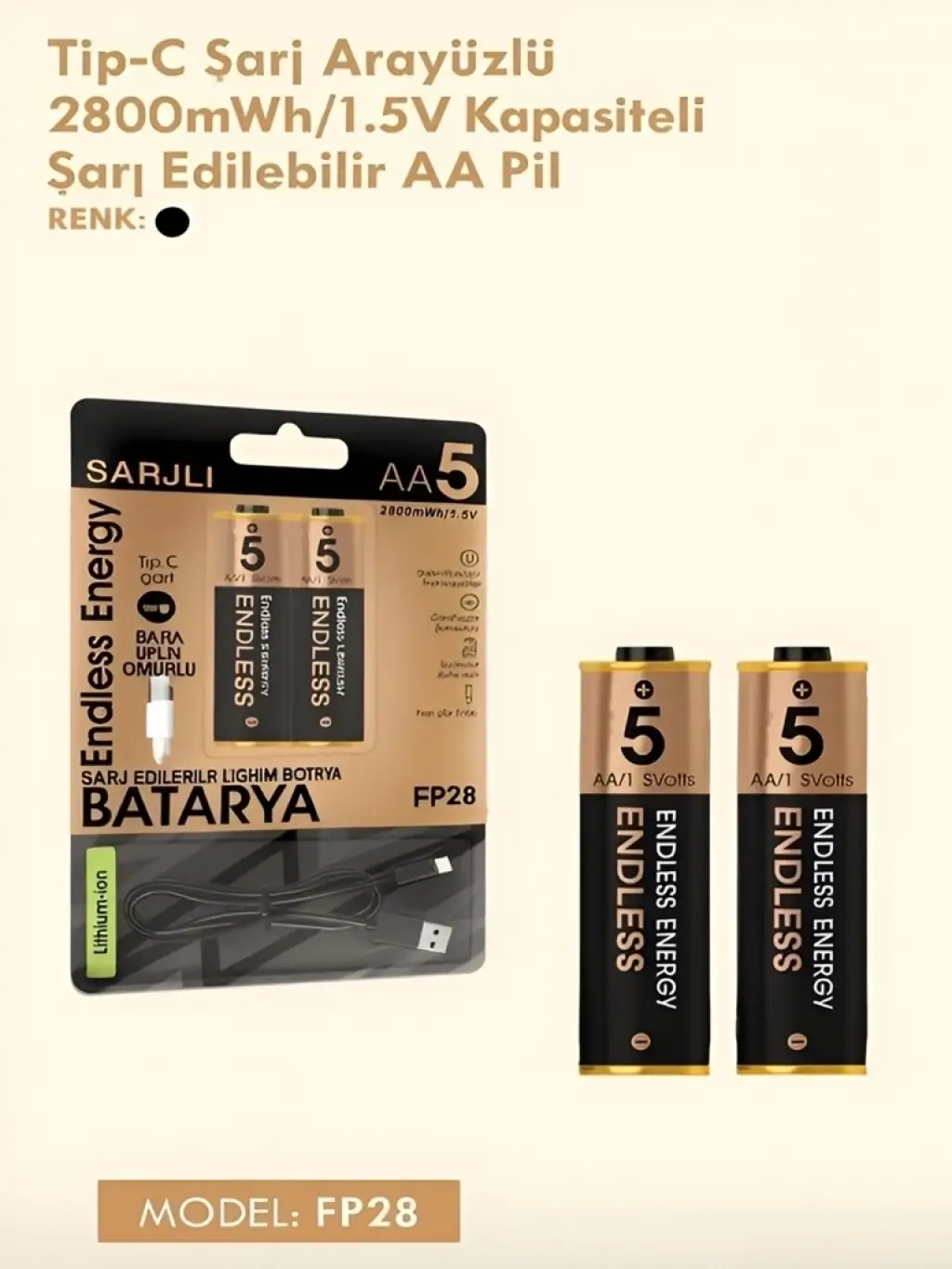 2 adet Type-C şarj edilebilir 1.5V lityum-iyon pil