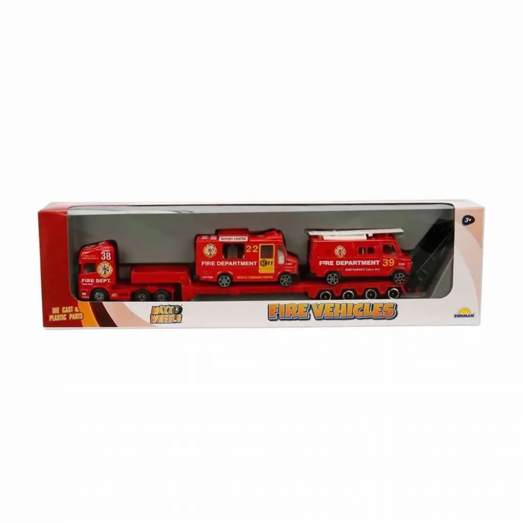 Set içerisinde; 1 adet taşıyıcı tır ve 2 adet serinin temasına uygun olan itfaiye kurtarma araçları yer almaktadır.
