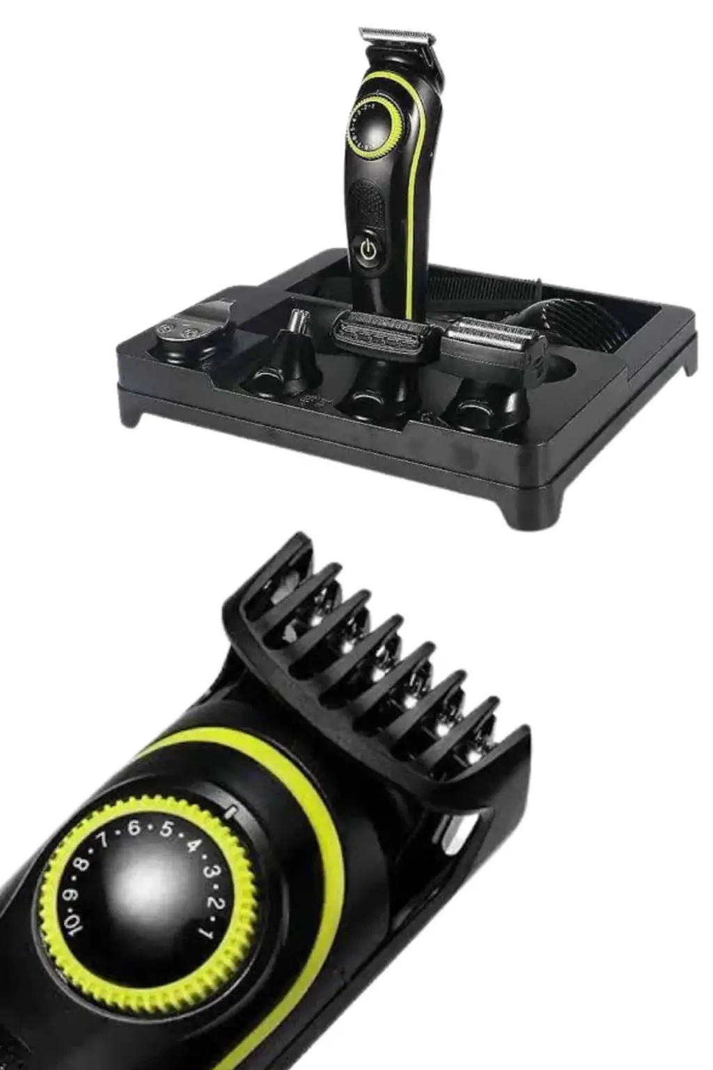 Bu şarjlı tıraş makinesi, hem işlevselliği hem de kullanıcı dostu tasarımıyla günlük bakım rutininizi kolaylaştırır. 5 farklı başlıkla donatılmış bu çok yönlü cihaz, saç ve sakal kesiminden burun-kulak kılı temizliğine, detaylı yüz hatları şekillendirmesinden vücut bakımına kadar geniş bir kullanım yelpazesi sunar. Güçlü ve sessiz çalışan motoru, kesintisiz performans sağlar; paslanmaz çelik bıçakları ise ciltle dost ve uzun ömürlü olacak şekilde tasarlanmıştır. Kablosuz kullanımı sayesinde hareket özgürlüğü sunar; tam şarjla uzun süreli kullanım imkanı tanırken, LED göstergesiyle batarya seviyesini kolayca takip edebilirsiniz. Ayarlanabilir tarak başlıkları ile farklı kesim uzunluklarına ulaşmak son derece pratiktir. Ergonomik yapısı rahat bir tutuş sağlarken, modern ve şık görünümü banyonuza estetik bir dokunuş katar. Suya dayanıklı başlıkları sayesinde hijyenik bir kullanım sunar ve temizlik işlemleri zahmetsizce yapılabilir. Bu çok amaçlı bakım seti, kişisel bakımını ön planda tutan herkes için ideal bir çözümdür.