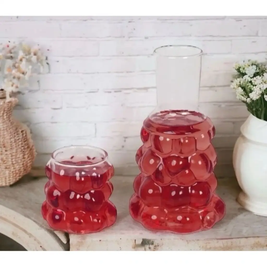 ÜZÜM DESENLİ BAŞUCU SÜRAHİSİÜrün ÖzellikleriÜzüm desenli başucu sürahisi, şeffaf camdan üretilmiştir ve şık tasarımıyla her ortamda dikkat çeker. Hem dekoratif hem de fonksiyonel olan bu sürahi ve bardağı özellikle yemek masalarında ya da başucunda kullanılmak için idealdir. Üzüm desenleri, ürünün zarif bir görünüme sahip olmasını sağlar. İster soğuk ister sıcak içecekler için kullanılabilir.Paket İçeriği1 Adet Üzüm Desenli Başucu Sürahisi
