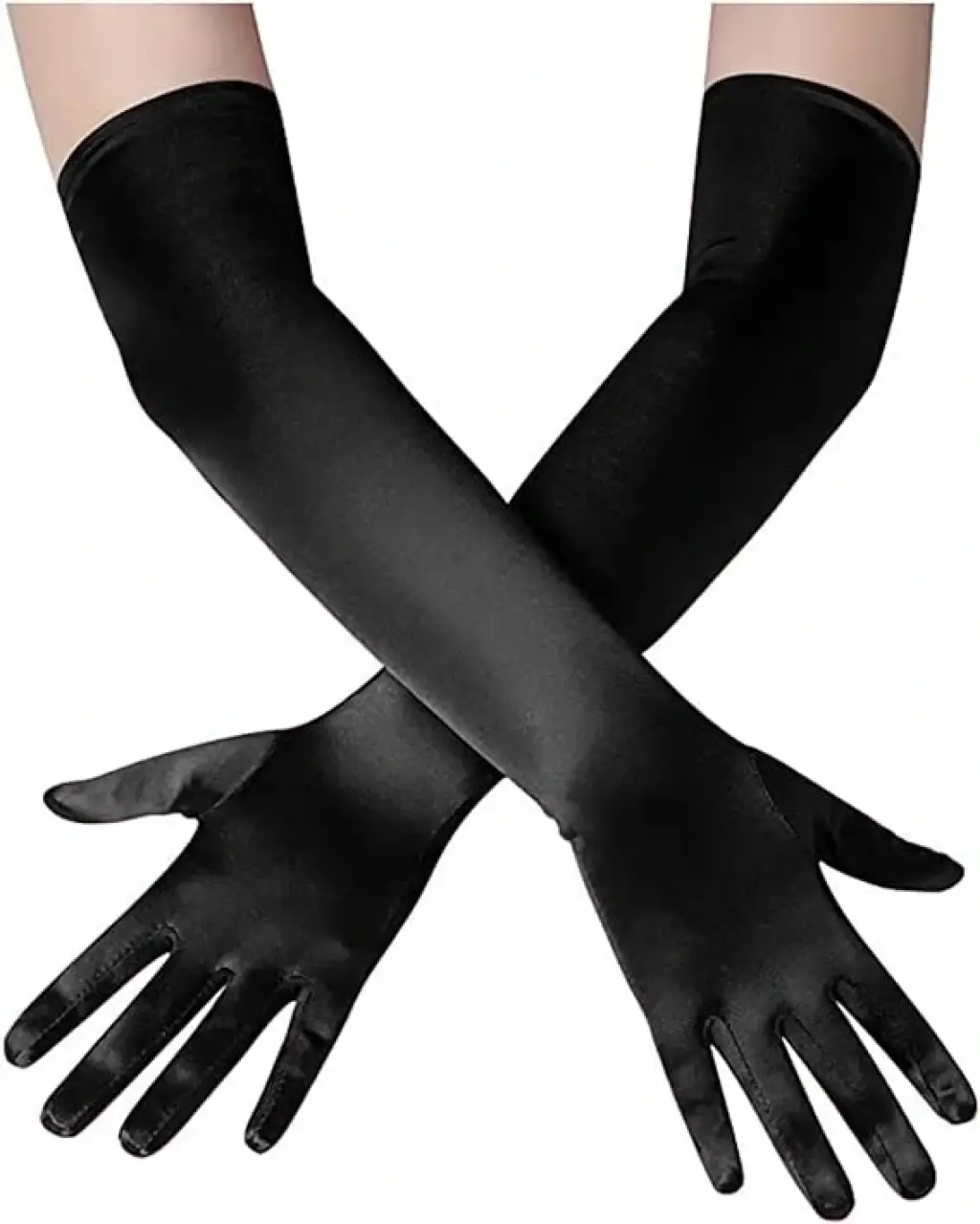 Uzun Boy Ekstra Parlak Saten Eldiven Siyah Renk