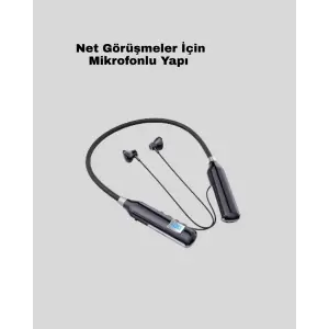 Y12 model boyun askılı Bluetooth kulaklık, hem günlük kullanım hem de spor aktiviteleri için üstün konfor ve yüksek performans sunar. En son Bluetooth 5.3 teknolojisi sayesinde cihazınıza hızlı, kararlı ve düşük gecikmeli bağlantı sağlar; bu sayede oyunlarda ses gecikmesi minimuma iner ve müzik deneyiminiz kesintisiz olur. Kulaklıkların ergonomik tasarımı, 45 derece eğimli başlıklar ve esnek sıvı silikon boyun askısı ile uzun süreli kullanımlarda bile maksimum rahatlık sunar. Cilt dostu malzeme, dayanıklı ve hafif yapısıyla boynunuzda neredeyse hissedilmez.Gelişmiş kompozit diyafram sürücüler, güçlü baslar ve net tizler sunarak ses kalitesini üst seviyeye çıkarır. Aktif gürültü engelleme (ANC) özelliği sayesinde dış ortam gürültüsünü azaltarak, ortam fark etmeksizin müziğinize veya aramanıza odaklanmanızı sağlar. Manyetik kulaklık başlıkları, kullanılmadığında birbirine yapışarak kaybolmayı ve dağınıklığı önler.Yüksek kapasiteli bataryası ile tek şarjda 100 saate kadar kesintisiz müzik dinleme ve görüşme imkanı verir, böylece gün boyunca şarj derdi yaşamazsınız. Şarj kutusundaki LCD ekran sayesinde kulaklıkların ve kutunun pil durumunu anlık olarak takip edebilirsiniz. Ayrıca hızlı şarj özelliği, kısa sürede dolum yaparak uzun süre kullanım sağlar.Dokunmatik kontrol paneli, telefonunuza dokunmadan çağrıları cevaplamanıza, müziği duraklatıp değiştirmeye veya ses seviyesini ayarlamaya olanak tanır. Ses kontrolü kulaklık üzerinden kolayca yapılabilir. Hafıza kartı (Micro SD) desteği ile en sevdiğiniz müzikleri telefonunuza ihtiyaç duymadan dinleyebilirsiniz.Y12 Bluetooth boyun bantlı kulaklık, Apple ve Android cihazlarla uyumludur ve şık tasarımıyla her anınızda yanınızda olur. Paket içeriğinde kulaklık, Type-C şarj kablosu, yedek silikon uçlar ve kullanım kılavuzu bulunmaktadır. Spor yaparken, yolculuklarda veya günlük kullanımlarda yüksek performans ve rahatlığı bu ürünle yaşayın.