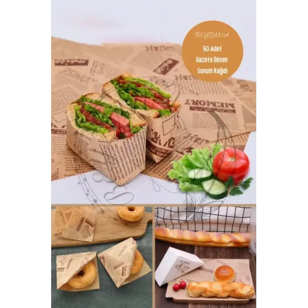 VINTAGE GAZETE DESENLİ SUNUM KAĞIDI 50 ADETZamansız Şıklık ve PratiklikYemek sunumunuza nostaljik bir dokunuş katın ve sunumlarınızı benzersiz kılın! Vintage gazete desenli sunum kağıdı, hem göz alıcı bir estetik sunar hem de kullanım kolaylığı sağlar. Bu özel tasarım yağlı kağıt, dayanıklı yapısı ve su geçirmez özelliği sayesinde sandviç, hamburger ve diğer lezzetli yiyeceklerinizi güvenle sararak sunmanızı mümkün kılar. Retro gazete desenleri ile sofralarınıza klasik bir hava katan bu ürün, aynı zamanda hijyenik ve gıda temasına uygun malzemelerden üretilmiştir.Yemek sunumu konusunda yenilikçi çözümler arayanlar için ideal olan bu sunum kağıdı, kafe, restoran ve ev kullanımı için mükemmel bir seçimdir. Sandviçlerinizi, kurabiyelerinizi ve diğer aperatiflerinizi bu şık kağıtlarla sarmak, misafirlerinize ve müşterilerinize unutulmaz bir deneyim sunmanızı sağlar. Kolayca katlanabilir ve kesilebilir yapısıyla pratik bir kullanım sunan vintage gazete desenli sunum kağıdı, aynı zamanda çevre dostu ve geri dönüştürülebilir materyallerden üretilmiştir.Sofralarınıza geçmişin büyüsünü taşıyan bu zarif ürün, stil ve işlevselliği bir araya getirerek, yemek sunumunuza farklı bir boyut kazandırır. Özel etkinliklerde, günlük sunumlarda ya da paket serviste rahatlıkla kullanabileceğiniz vintage gazete desenli sunum kağıdı, mutfağınızın vazgeçilmez bir parçası olacak. Nostaljinin şıklığını ve pratikliğini bir arada sunan bu eşsiz kağıtlarla, yemek sunumlarınızı sıradanlıktan çıkarın ve her anınızı özel kılın.Paket İçeriği50 adet vintage gazete desenli sunum kağıdı