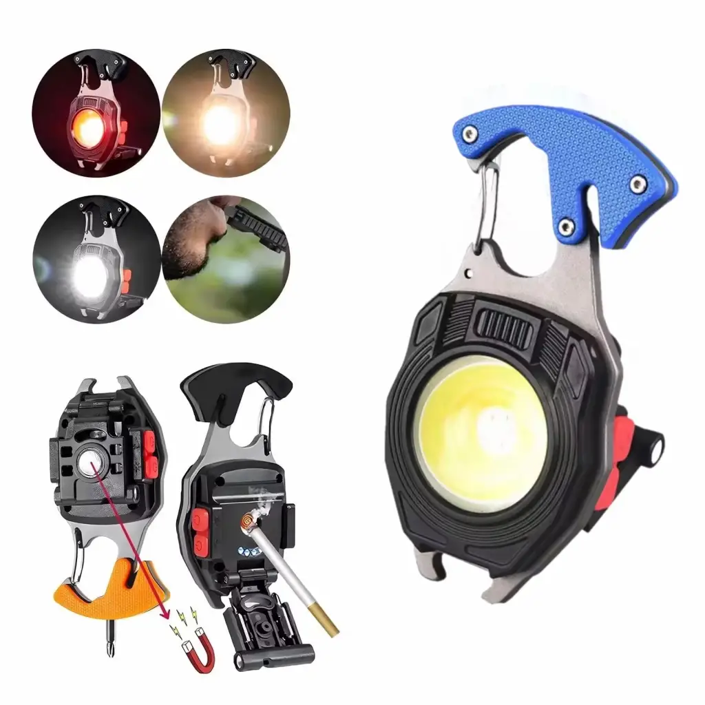 Çok işlevli: Bu alüminyum alaşımlı anahtarlık el feneri, aydınlatma, şişe açacağı, çakmak, kesici, güçlü manyetizma, hayatta kalma düdüğü, kalem klipsi gibi birden çok işlevi birleştirir.