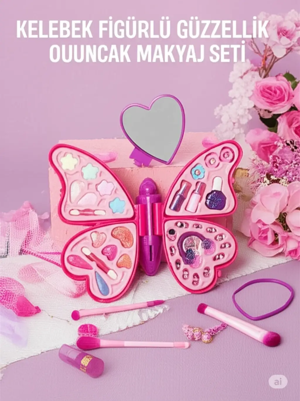 Renkli ve eğlenceli tasarımıyla kız çocuklarına özel hazırlanan makyaj seti, güvenli içerikleriyle eğlenceli oyun saatleri sunar.