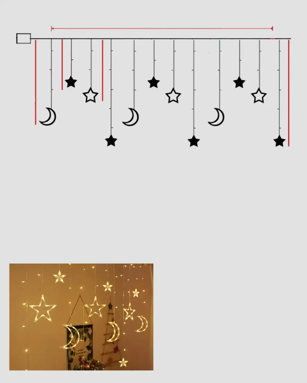 Yanıp sönen ve sabit modlu yıldız ay perde led ışık, dekorasyona hareket ve es katmak isteyenler için ideal bir üründür. Yıldız figürleri ile ay detayları, ortama masalsı bir görünüm kazandırır.LED ışıklar, homojen bir aydınlatma sunar ve göz yormaz. Pille çalışması sayesinde her alanda kullanılabilir. Özellikle priz bulunmayan alanlar için büyük avantaj sağlar.Özel günler, organizasyonlar ve ev dekorasyonları için hem şık hem de güvenli bir aydınlatma çözümüdür.
